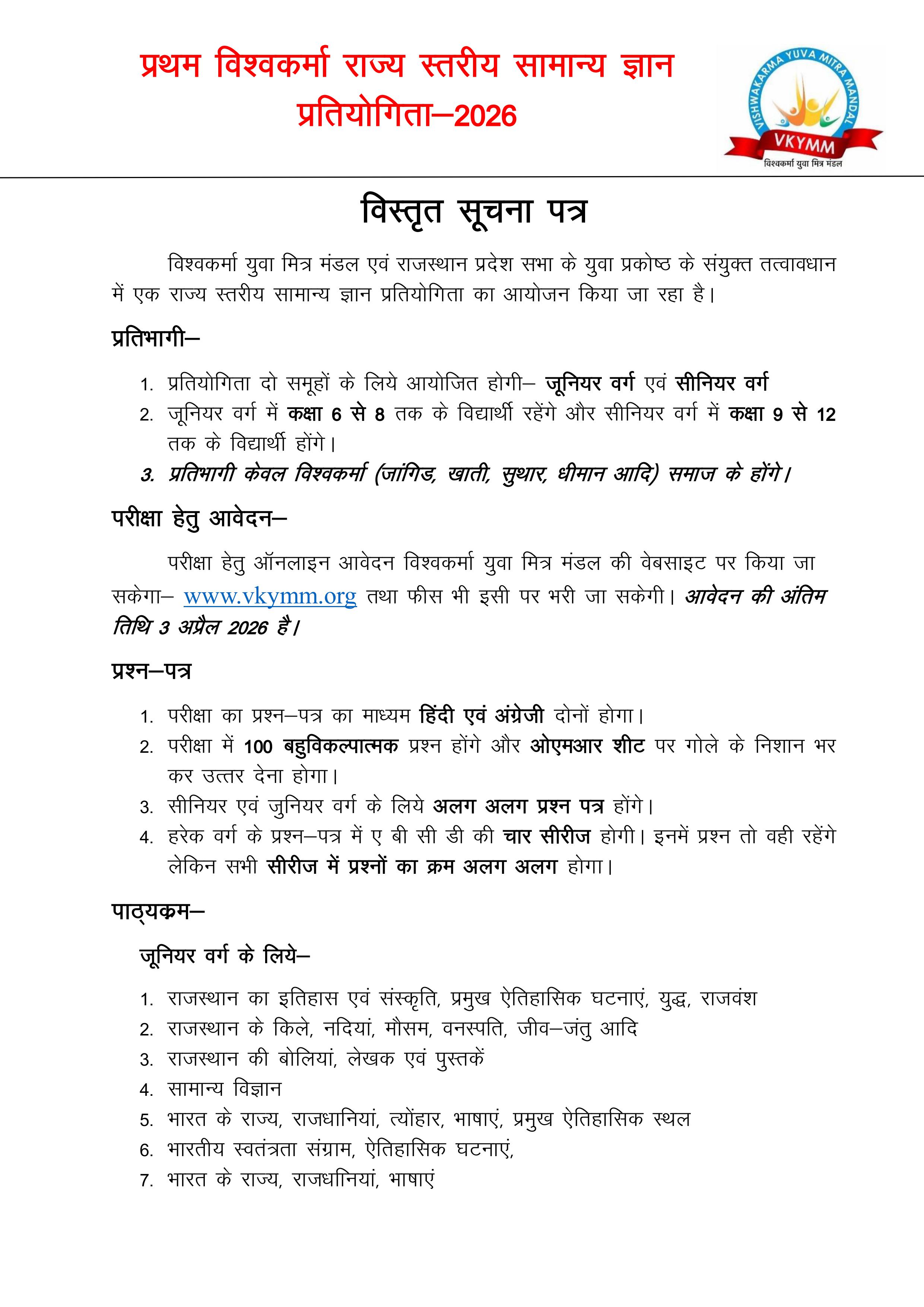 विश्वकर्मा सामान्य ज्ञान प्रतियोगिता - 2026